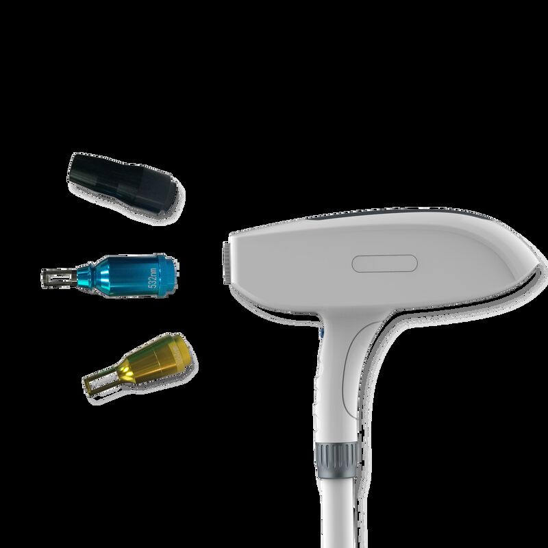 เลเซอร์มีปลายการรักษาที่เปลี่ยนได้สองแบบ โดยแต่ละแบบมีความยาวคลื่นที่แตกต่างกัน: 1064 nm & 532nm